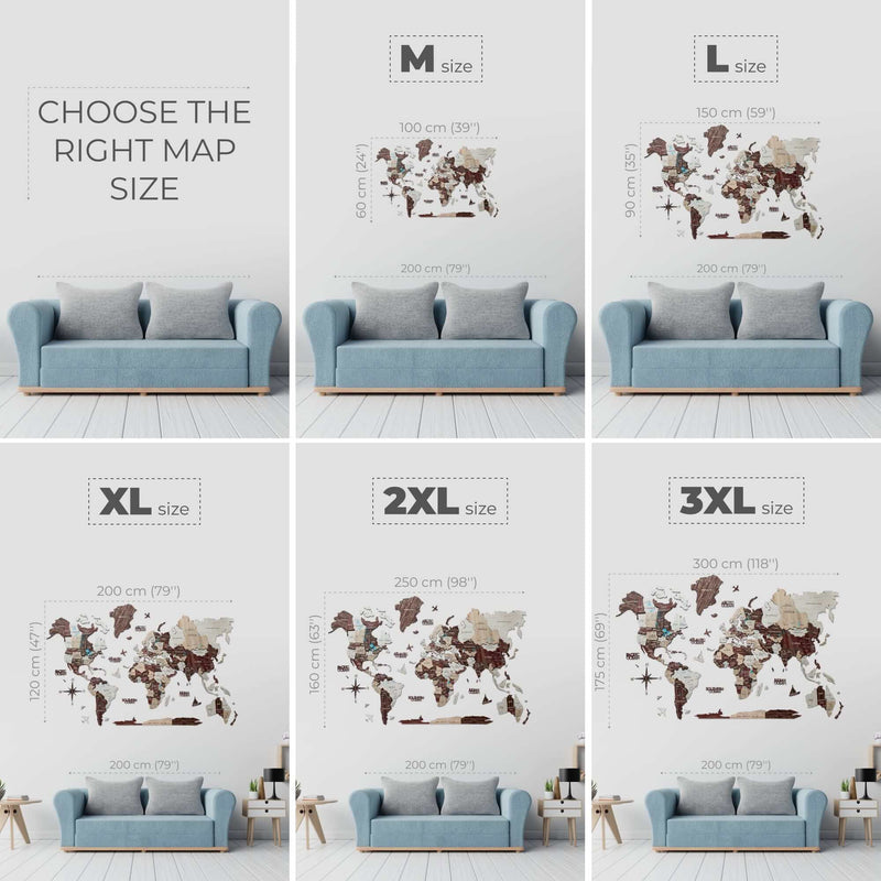 Naša mapa, vyrobená z certifikovanej udržateľnej brezovej preglejky a vláknitého dreva, nie je len dekoráciou, ale aj plánovačom ciest a pamäťovou tabuľou. Inštalácia je hračka, zaberie len pár hodín. Je to perfektný doplnok pripravený ako darček, ktorý rozžiari váš priestor, dostupný v rôznych veľkostiach.