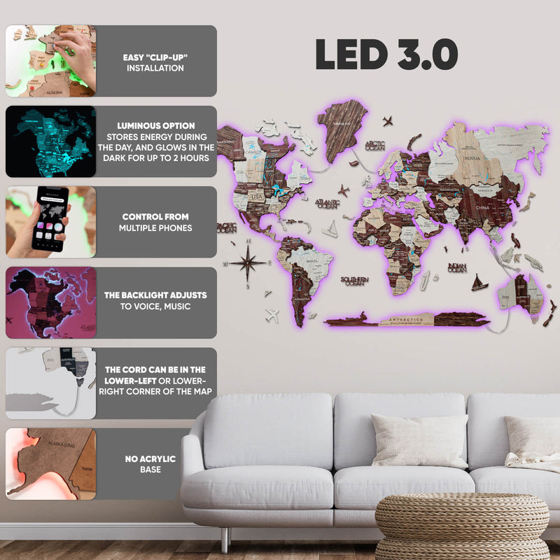Wooden World Map LED 3.0 nie je len mapa, je to úchvatná kombinácia estetiky a inovácie!