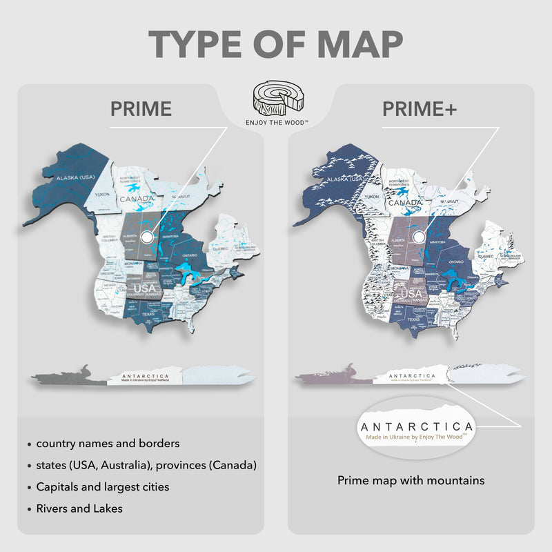 UPOZORNENIE: Mapa nie je geografická; možno vynechať niektoré menšie krajiny a ostrovy. Každá mapa je jedinečná a odtiene sa líšia, pretože je vyrobená z prírodného dreva.