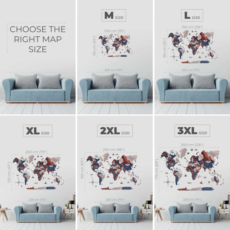 Naša mapa, vyrobená z certifikovanej udržateľnej brezovej preglejky a vláknitého dreva, nie je len dekoráciou, ale aj plánovačom ciest a pamäťovou tabuľou. Inštalácia je hračka, zaberie len pár hodín. Je to perfektný doplnok pripravený ako darček, ktorý rozžiari váš priestor, dostupný v rôznych veľkostiach.