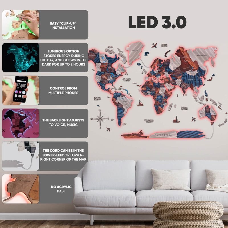 Wooden World Map LED 3.0 nie je len mapa, je to úchvatná kombinácia estetiky a inovácie!