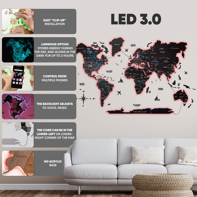Wooden World Map LED 3.0 nie je len mapa, je to úchvatná kombinácia estetiky a inovácie!