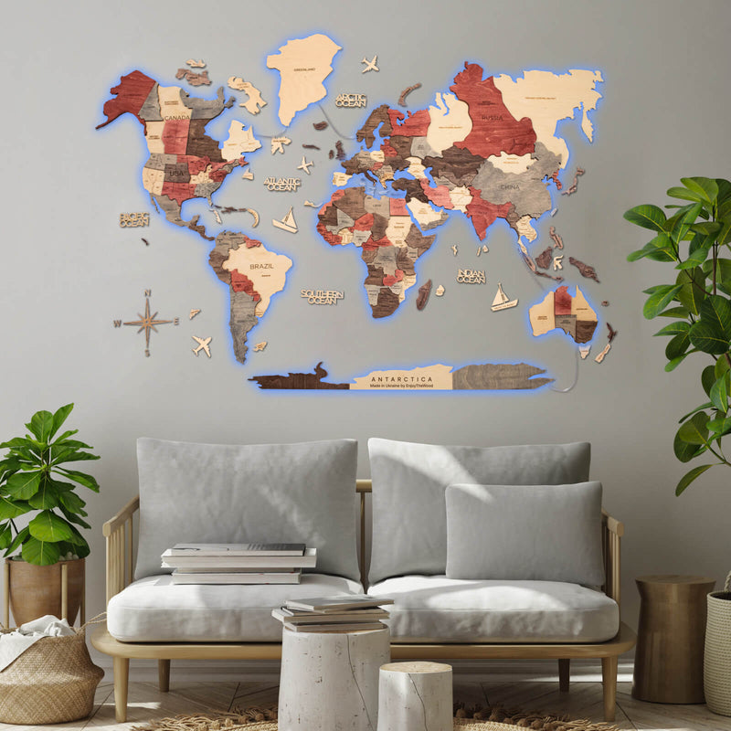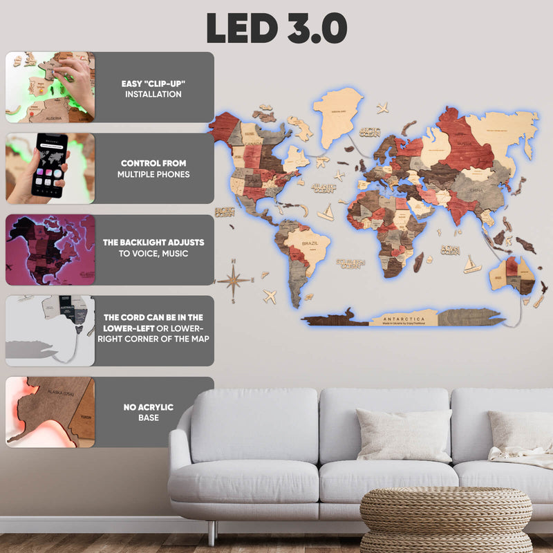 Wooden World Map LED 3.0 nie je len mapa, je to úchvatná kombinácia estetiky a inovácie!