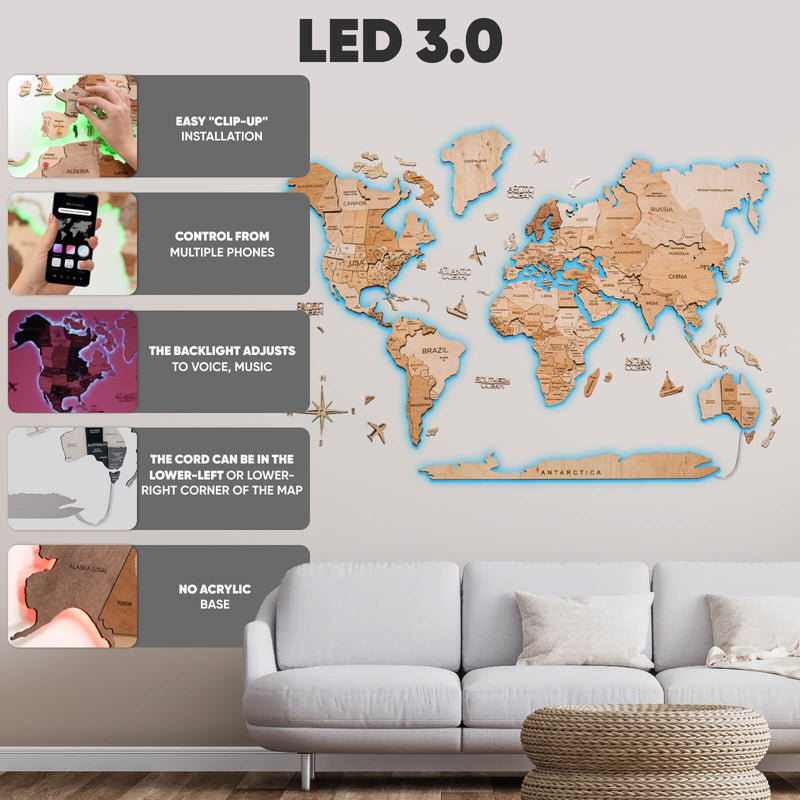 Wooden World Map LED 3.0 nie je len mapa, je to úchvatná kombinácia estetiky a inovácie!