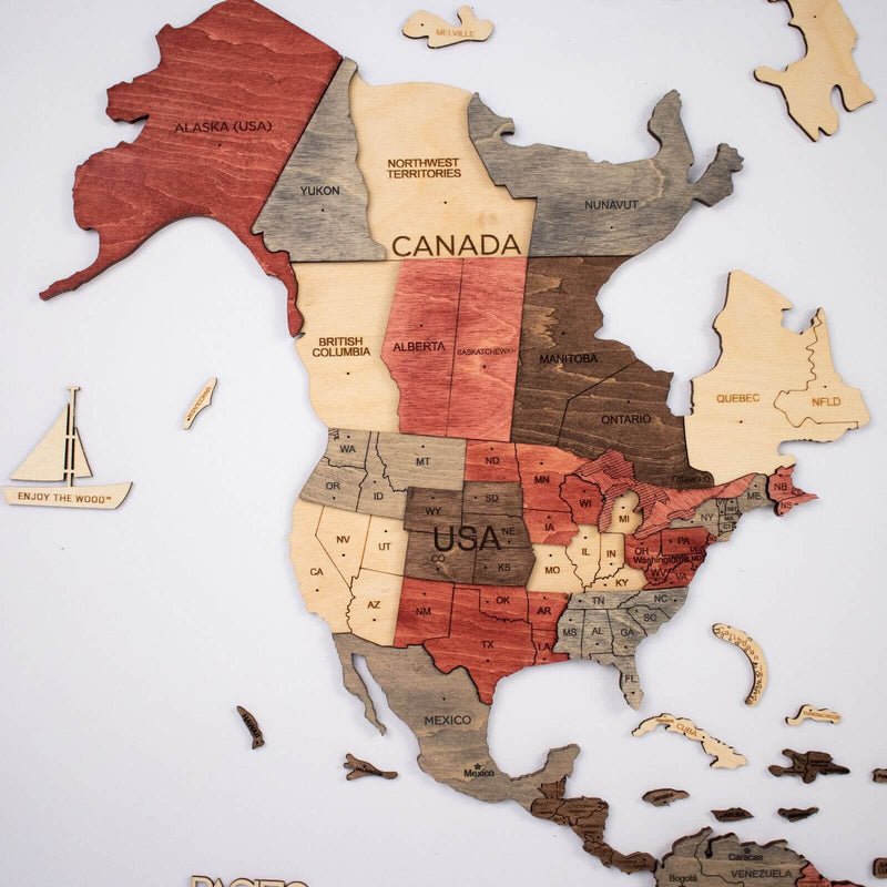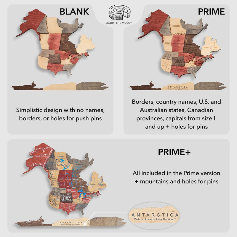 UPOZORNENIE: Mapa nie je geografická, niektoré menšie krajiny a ostrovy môžu byť vynechané. Každá mapa je jedinečná a odtiene sa líšia, pretože je vyrobená z prírodného dreva.