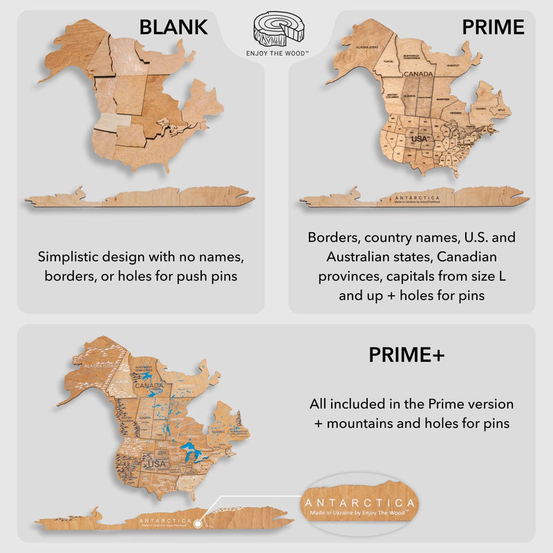UPOZORNENIE: Mapa nie je geografická, niektoré menšie krajiny a ostrovy môžu byť vynechané. Každá mapa je jedinečná a odtiene sa líšia, pretože je vyrobená z prírodného dreva.