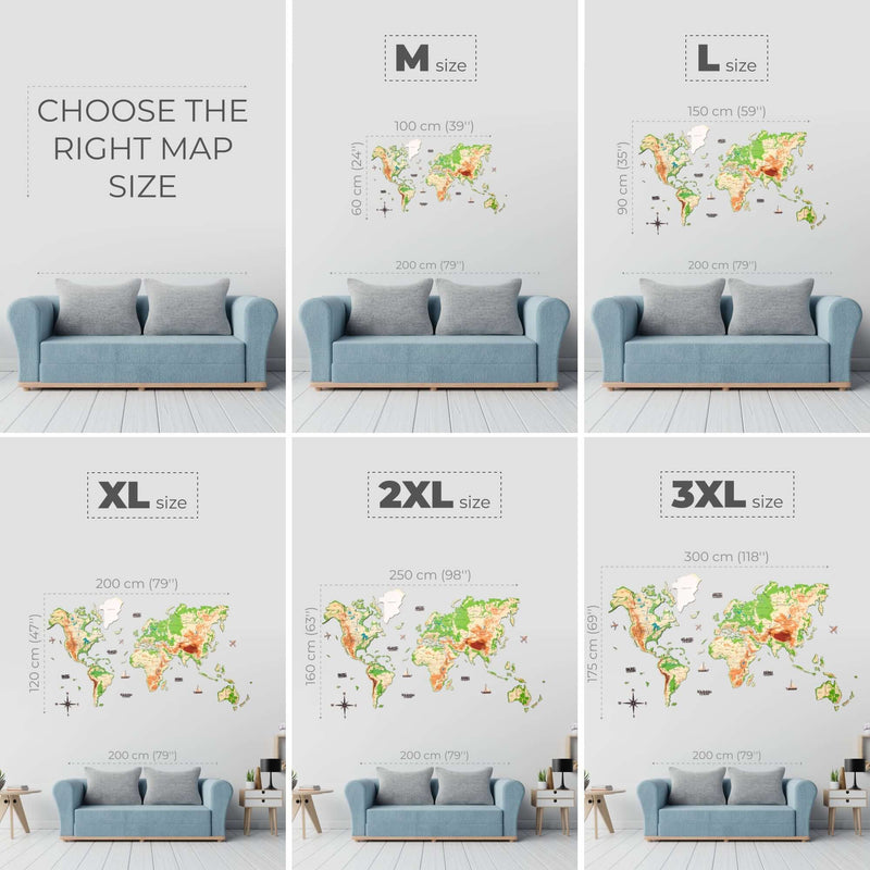 Mapa nie je geografickou pomôckou, pretože niektoré malé ostrovy a mestá sú vynechané. S deťmi si však môžete pripnúť miesta, ktoré by ste radi navštívili alebo ktoré ste už navštívili. Alebo jednoducho objavte, aký veľký je svet, a podporte v malých deťoch túlavosť a lásku k zemepisu.
