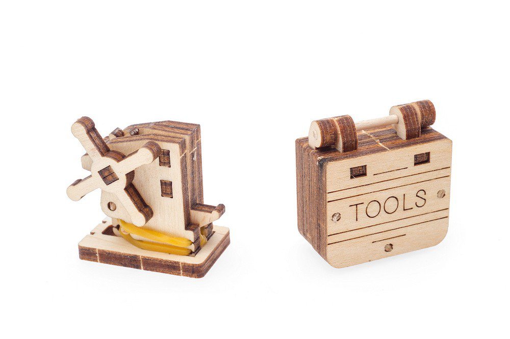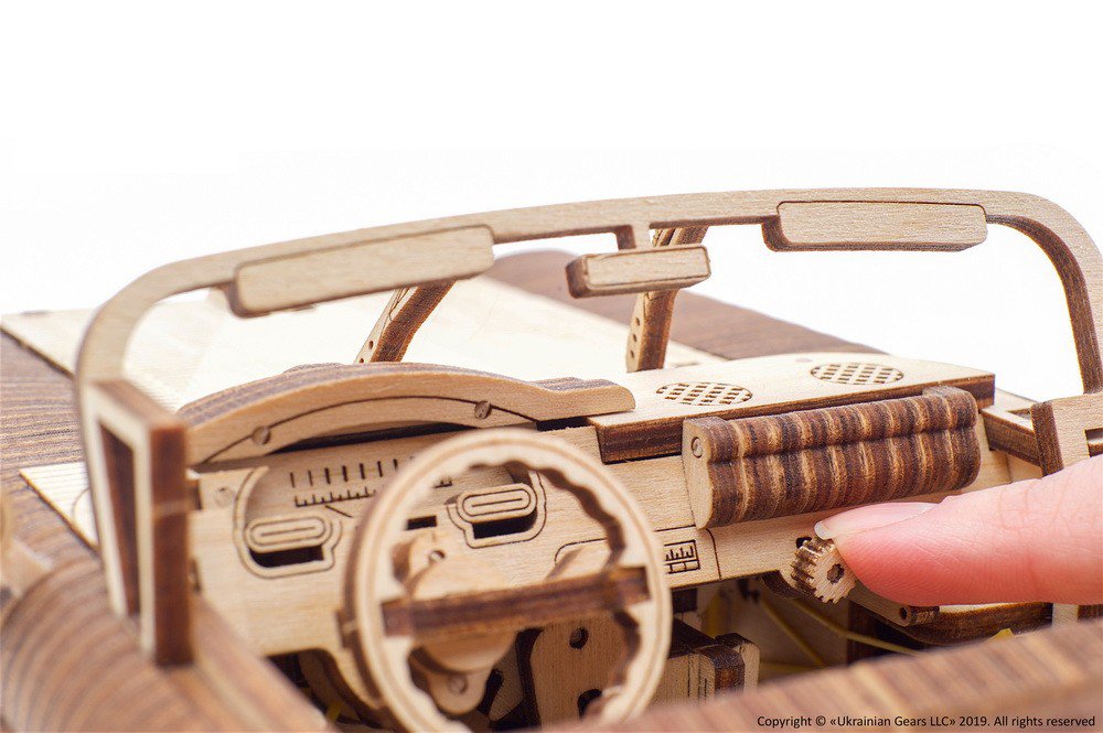 Aby bol dizajn tohto jedinečného modelu ešte realistickejší, inžinieri Ugears pridali niekoľko dôležitých prvkov, vďaka ktorým vyzerá automobil mimoriadne realisticky. Veríme, že sa vám budú páčiť kľučky okien a plne funkčné stierače, ako aj zdvihák a opravárenské náradie namontované pod zadným kufrom.
