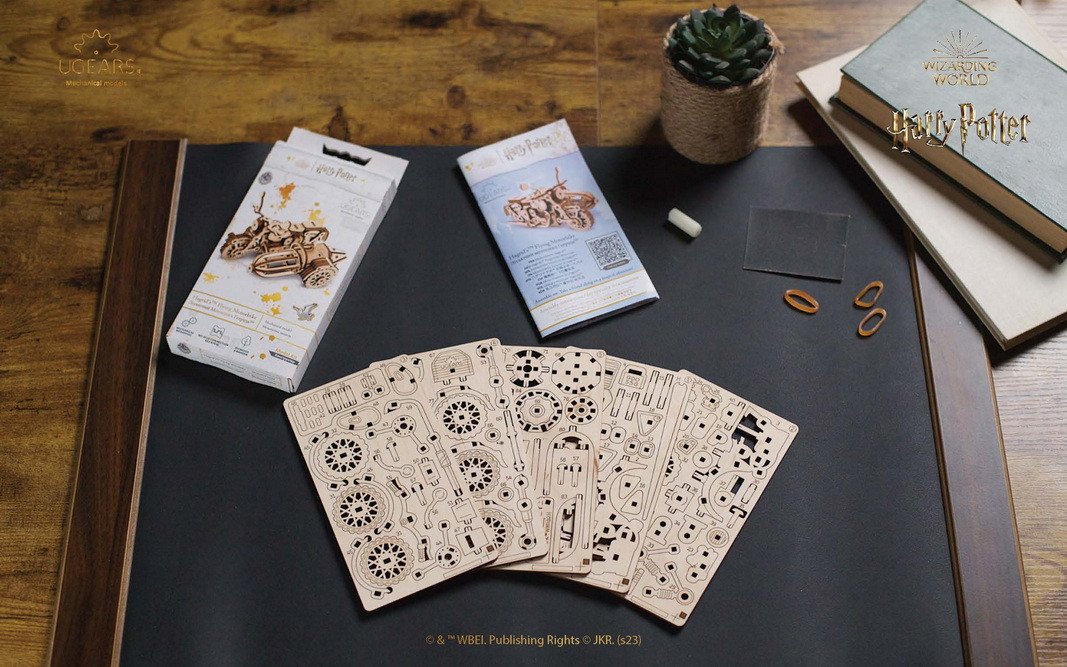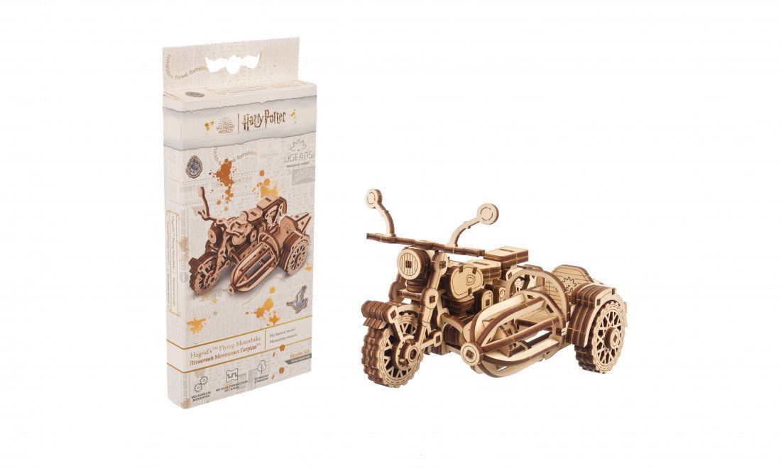 Mini model Hagridovej lietajúcej motorky™ s postranným vozíkom z kolekcie Ugears Harry Potter™ je miniatúrnou kópiou lietajúcej motorky, ktorú Sirius Black, krstný otec Harryho Pottera, požičal Rubeusovi Hagridovi, aby dopravil čerstvo osirelé dieťa Harryho do domu Dursleyovcov. O šestnásť rokov neskôr Hagrid vyzdvihol Harryho z tej istej adresy tesne pred tým, ako Harryho ochranné kúzlo vypršalo, lenže tentoraz sa dospievajúci čarodejník viezol na sajdkáre.