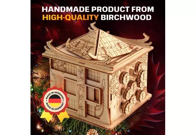 Dostaňte sa do tajného kupé so svojimi blízkymi bez toho, aby ste opustili domov! Čaká na vás vzrušujúci zážitok, zložité pasce a zložité hádanky v pátracej miestnosti. House of the Dragon je navrhnutý skúsenými inžiniermi, ktorí vyvinuli jedinečné hádanky a viacúrovňové výzvy. Nesľubujeme, že to bude ľahké. Ale garantujeme, že to bude veľmi zaujímavé!House of the Dragon je vyrobený výhradne z brezového dreva a je ekologickým produktom. Drevo na výrobu starostlivo vyberáme, triedime, ošetrujeme a výrobok ručne montujeme v našich továrňach v EÚ pred zabalením a odoslaním k vám s našou láskou.Do rodiny EscapeWelt sa pripojilo viac ako 300 000 zákazníkov. Oceňujú našu prácu a odhodlanie vytvárať tie najlepšie zážitky tým, že prejavujú svoju lásku a vracajú sa znova a znova. Ďakujeme, že nám zverujete svoje emócie! Inšpirujete nás novými nápadmi a náš tím naďalej poteší vás a vašich blízkych!