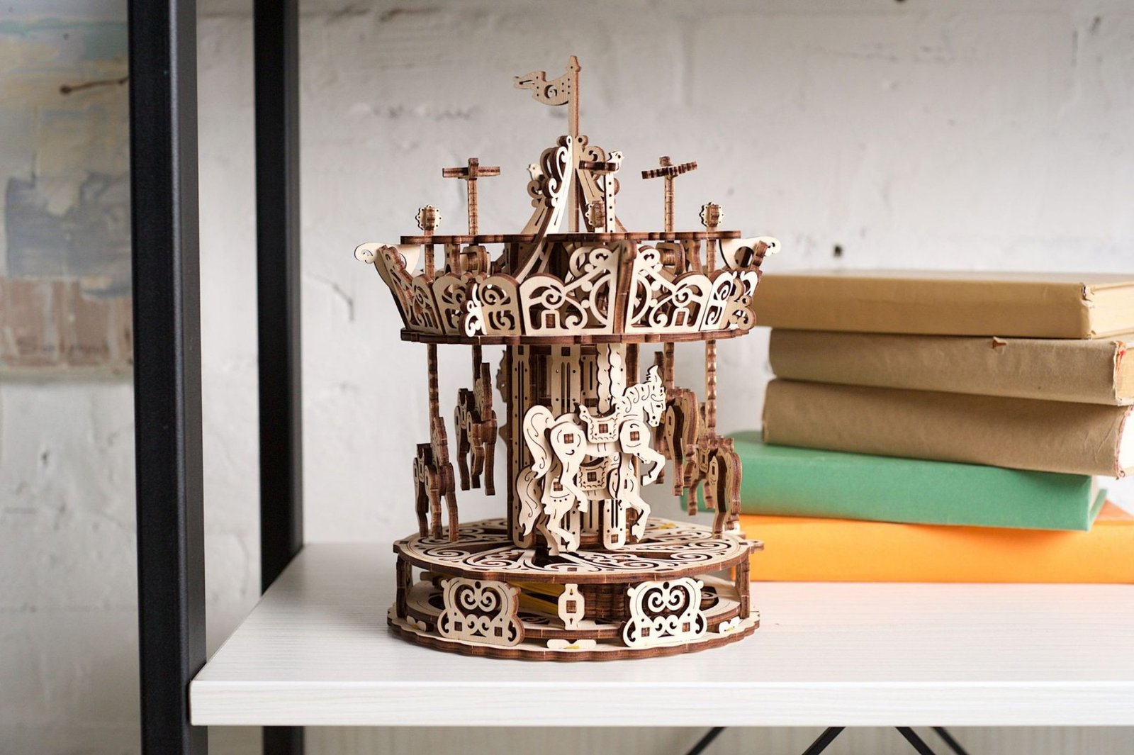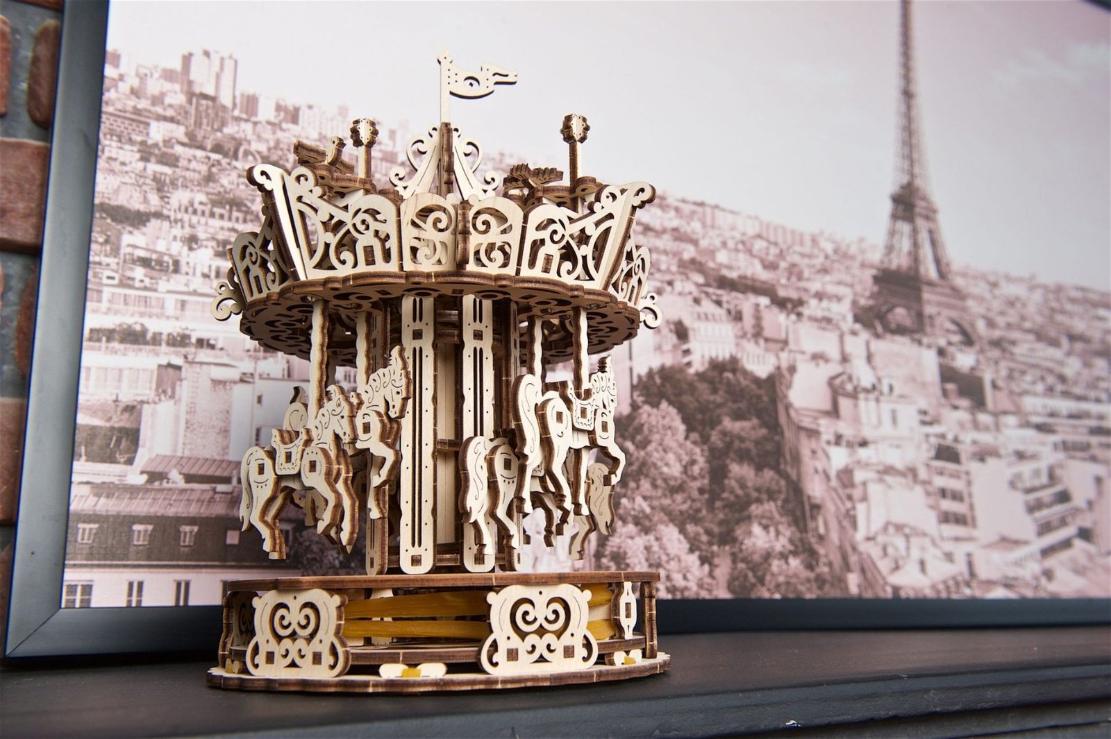 3D puzzle Carousel - drevený mechanický model od Ugears