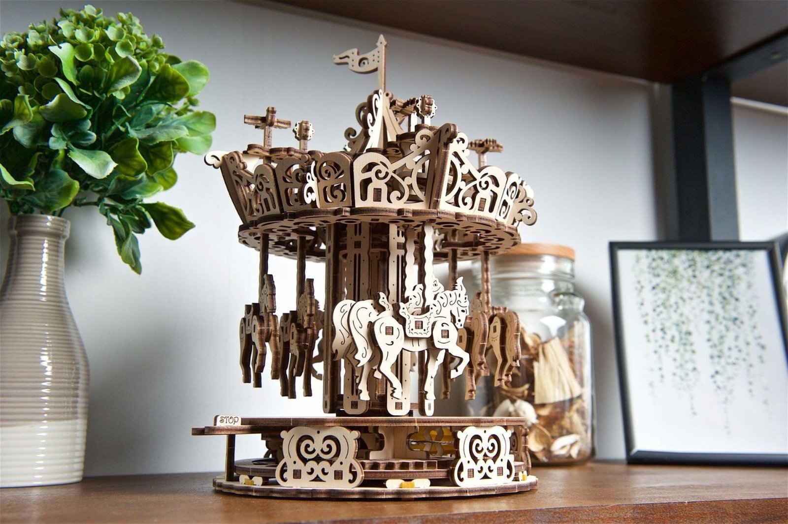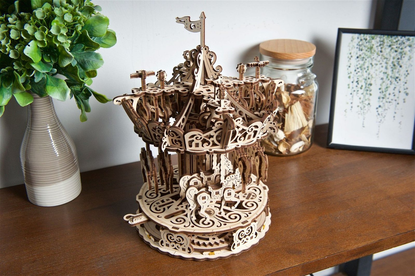 Ugears Carousel je ideálny darček pre niekoho, kto si chce oddýchnuť od každodenného stresu a na pár hodín pocítiť bezstarostné kúzlo jarmoku. Poskladajte a natočte ho, garantujeme Vám, že budete počuť hudbu, pocítite atmosféru jarmoku a spomeniete si, aká bola radosť jazdiť na svojom obľúbenom tátošovi!