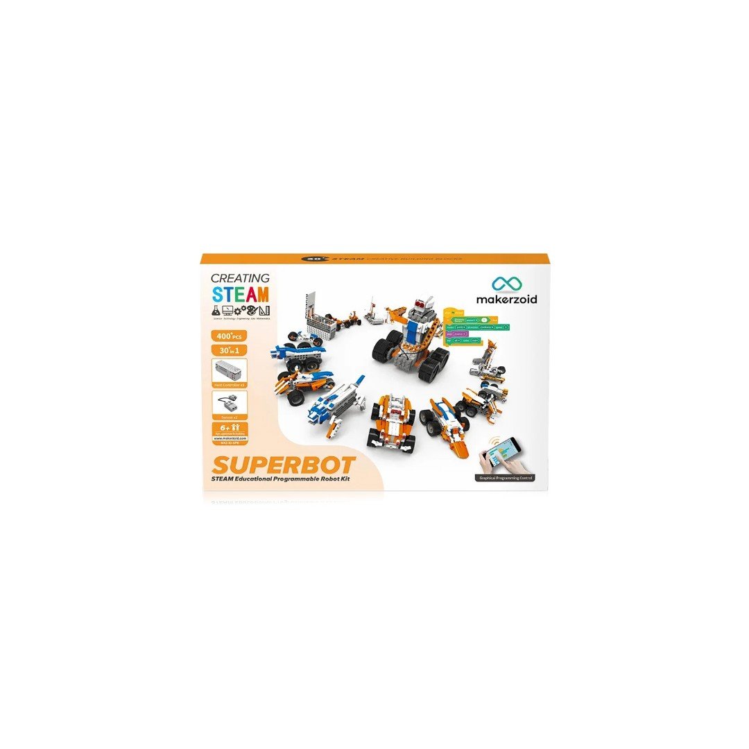 Ako naša prvá súprava programovateľných stavebných blokov si superbot získal veľa fanúšikov a spolieha sa na jeho ostré farby a skvelé modely pretekárskych áut a nákladných áut. Stačí pretiahnuť niekoľko objednávok v sekcii Kódovanie a potom sa to môže pohybovať, jednoduché, ale plné základných znalostí kódovania.400+ kusov tehál s integrovaným ovládaním motoraSuperbot má viac ako 400 kusov tehál, mohol by postaviť viac ako 26 modelov. Hlavne sú to rôzne pretekárske autá, nákladné autá, rysovačky...atď. Integrovaný motor (batérie nie sú súčasťou balenia) uľahčuje konštrukciu. Začiatočníkom programovania sa odporúča, aby to brali ako prvé.Auto Racing Battle Games OnSuperbot prináša deťom nekonečnú zábavu pri stavaní, hraní a súboji so svojimi modelmi áut, vďaka čomu sa stáva novým populárnym na detskej párty. Poďme sa hrať so svojím priateľom a vytvoriť bojovú hru s autami!Navádzanie APP & DIAĽKOVÉ OVLÁDANIEPomocou bezplatnej aplikácie MAKZERZOID z App Store a Google Play, cez bluetooth prepojenie s inteligentnými zariadeniami, môžu deti jednoducho zostavovať modely zo sekcie „Build“ a potom môžu ovládať motorizovaného robota, aby sa pohyboval všetkými smermi, ktoré prinášajú toľko radosti.Extra výhody SuperbotaSuperbot má pridané nejaké znalosti o kódovaní jednoduchým a ľahkým spôsobom, aby ich deti lepšie pochopili. Jeho základný dizajn je tiež založený na poznatkoch vedy, techniky, inžinierskej matematiky a umenia, ktoré môžu pomôcť deťom rozvíjať ich logické myslenie, predstavivosť, kreativitu a schopnosť riešiť problémy.