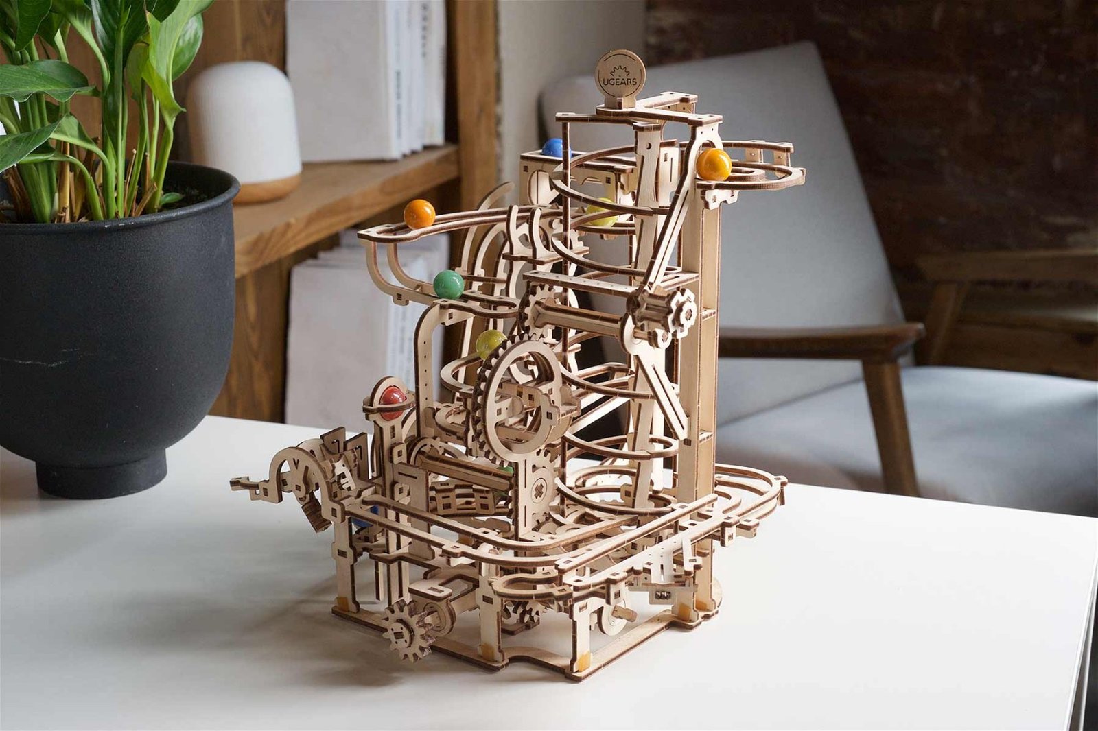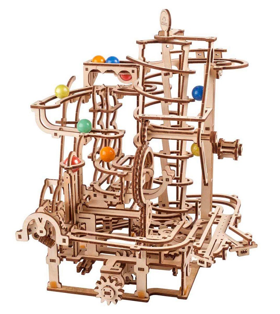 Marble dráha Špirálový dopravník je vzrušujúcou zábavou pre ľudí všetkých vekových kategórií. A odporúčame Vám poskladať si všetky štyri Marble dráhy, aby ste znásobili radosť z tohto mechanického zázraku až štyrikrát! Taktiež ho môžete namaľovať rôznymi farbami, ako to robia fanúšikovia modelov Ugears po celom svete.