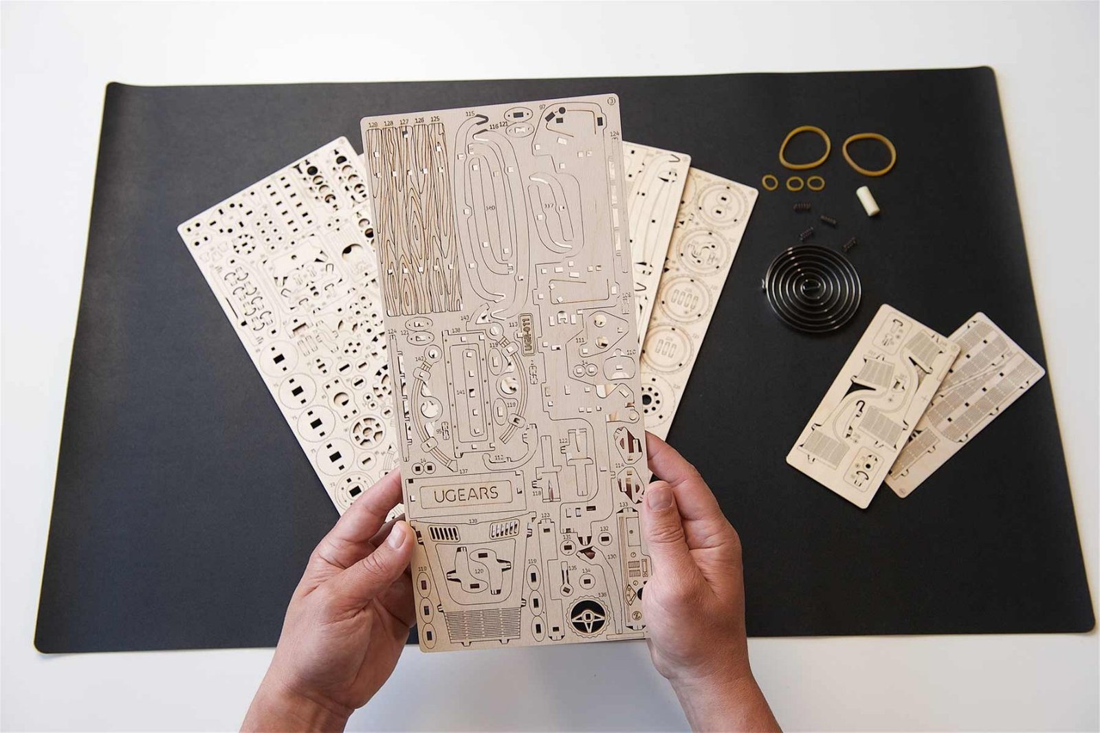 Drevorubačský Pick-up od Ugears je čerstvým prírastkom do našej exkluzívnej zbierky nákladných a osobných áut, motocyklov a ďalších dopravných prostriedkov. 3D puzzle Drevorubačského Pick-upu sa skladá zo 460 dielov, stupeň náročnosti je "Vysoký" a preto Vám poskytne viac ako 8 hodín radosti pri montáži. Mimochodom, ak máte radi nákladné autá, pozrite si aj model Ťahač VM-03 s prívesom, Nákladné auto UGM-11 Truck so sadou doplnkov alebo autonómnu Autocisternu či Hasičský automobil. Rozšírte svoju zbierku drevených mechanických nákladných vozidiel ešte dnes! V katalógu Ugears medzi autami, loďami a inými modelmi zo vzdelávacej kolekcie STEM Lab nájdete vzrušujúce, dômyselné a magické 3D puzzle vhodné pre každého milovníka stavebníc.