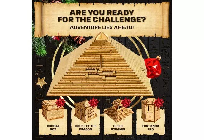 Dostaňte sa do tajného kupé so svojimi blízkymi bez toho, aby ste opustili domov! Čaká na vás vzrušujúci zážitok, zložité pasce a zložité hádanky v pátracej miestnosti. Quest Pyramid je navrhnutý skúsenými inžiniermi, ktorí vyvinuli jedinečné hádanky a viacúrovňové výzvy. Nesľubujeme, že to bude ľahké. Ale garantujeme, že to bude veľmi zaujímavé!Quest Pyramid je vyrobený výhradne z brezového dreva a je ekologickým produktom. Drevo na výrobu starostlivo vyberáme, triedime, ošetrujeme a výrobok ručne montujeme v našich továrňach v EÚ pred zabalením a odoslaním k vám s našou láskou.Do rodiny EscapeWelt sa pripojilo viac ako 300 000 zákazníkov. Oceňujú našu prácu a odhodlanie vytvárať tie najlepšie zážitky tým, že prejavujú svoju lásku a vracajú sa znova a znova. Ďakujeme, že nám zverujete svoje emócie! Inšpirujete nás novými nápadmi a náš tím naďalej poteší vás a vašich blízkych!