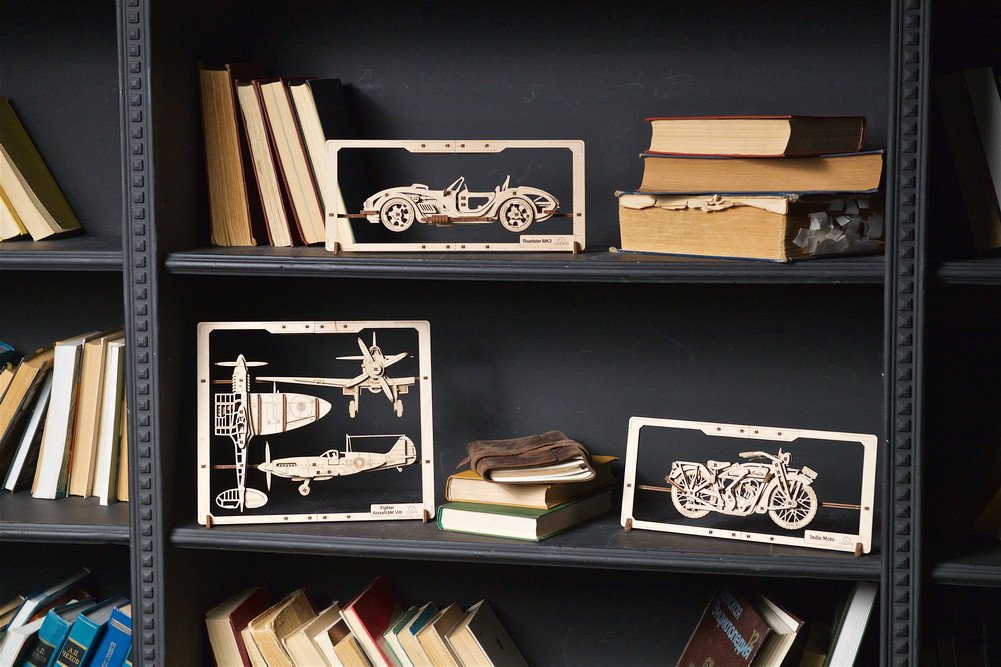Stíhacie lietadlo, rovnako ako ostatné klasické vozidlá v našej novej línii 2,5D puzzle, sa líši od všetkého, čo spoločnosť Ugears vyrábala predtým. Tieto drevené mechanické obrázky sú ako sploštené 3D modely, určené na statické vystavenie, ale so zvratom: pohyblivé časti, ktoré obrázok oživujú. Obrázkové puzzle môžete ponechať v prirodzenom drevenom stave alebo ich zafarbiť, namaľovať alebo zafarbiť model vo farebnej schéme podľa vlastného výberu (farby nie sú súčasťou balenia). Prebuďte v sebe umelca a staviteľa so stavebnicou Ugears!
