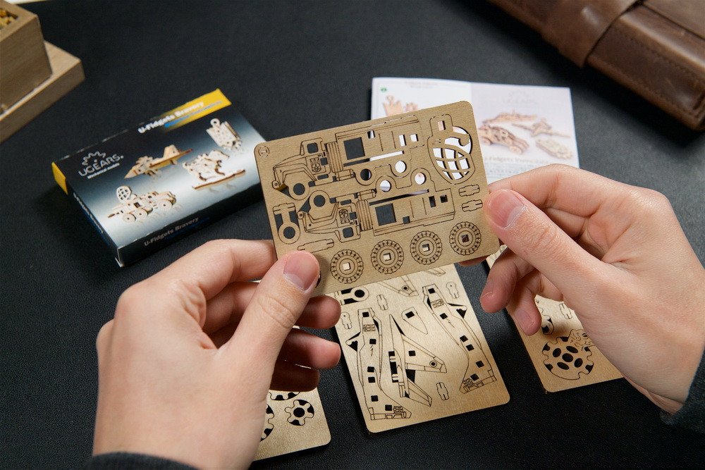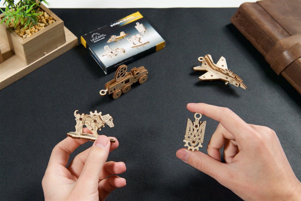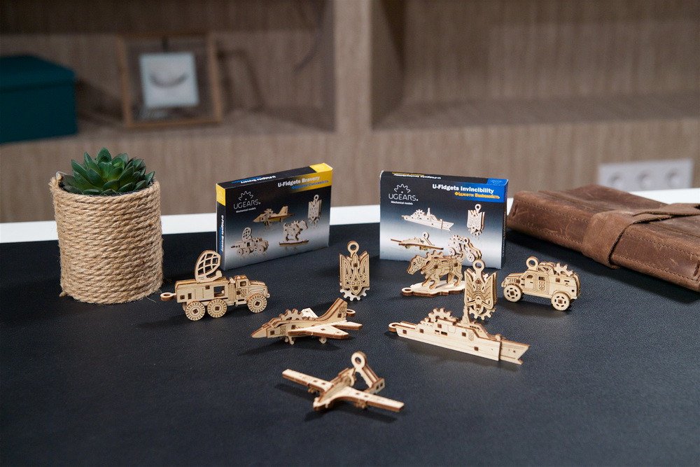 Séria U-Fidgets „Bravery“ od spoločnosti Ugears oslavuje niektorých hrdinov, ktorí statočne bránili Ukrajinu pred okupantom. Súprava obsahuje štyri malé drevené figúrky, ktoré si sami zostavíte, pričom každá z nich má jednoduché mechanické prvky: